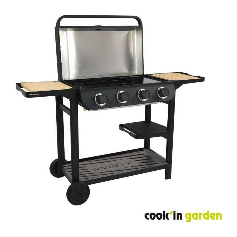 Barbacoa de gas - COOK'IN GARDEN - FLAVO - 4 fuegos - Negro
