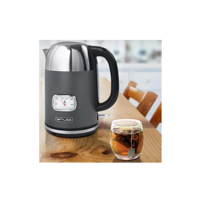 Automatic shut-off: YesOther(s): Illuminated switchTravel kettle: NoKettle capacity: 1.5 L and moreMaximum capacity in Liters: 1.7Color: BlackSecondary color(s): Stainless steelDimensions (cm): 24.4 x 15.1 x 21.04Shape: OvalWater level indication: YesMaterial of the device: Stainless steelWeight (kg): 1Power (W): 2200Cord storage: Cord winderHidden resistance: Yes360° rotation: YesWireless: YesVariable temperature: NoType: KettleFilter type: Removable and washable