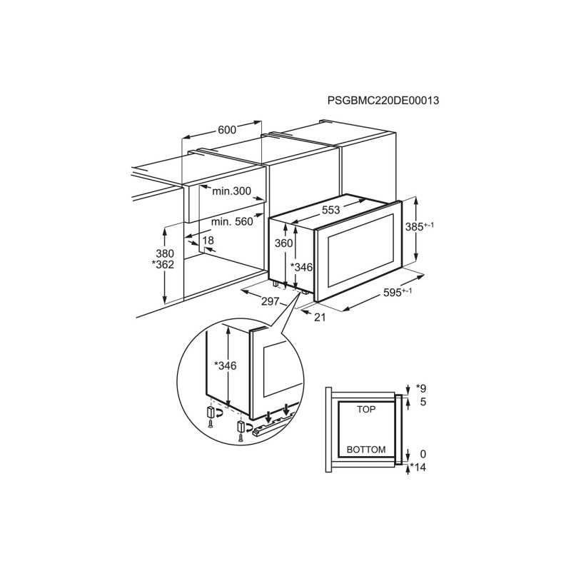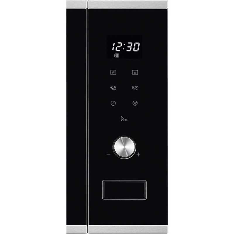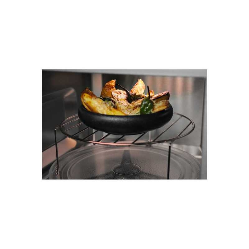 Main characteristics: Type of installation: Built-in. Cooking appliance functions: Grill. Power: 800 W. Type of oven cleaning: Manual. Cooking mode: Grill, Microwave, Reheat, Defrost. Total volume: 20 l. Connected: No. Built-in height: 38 cm. Built-in width: 56 cm. Depth recess: 30 cm. Weight: 17 kg. Product depth: 46 cm. Height: 38.2 cm. Width: 59.4 cm. Cavity finish: Stainless steel. Grill power: 1000 W. Energy used: Electric. Type of oven opening: Lateral. Accepted diameter of the tray: 25.5 cm. Internal dimensions: HxLxD: 20.8 x 30.8 x 29.8 cm.Color: Black.Country of manufacture: China.Origin of manufacture: Made outside Europe.Availability of spare parts: 10 years.Strong points: Built-in - Tray diameter: 25.5 cm - Capacity 20 liters.MO power: 800 W - Quartz grill power: 1000 W. Electromechanical programmer - 5 power levels. Niche height 38 cm - Stainless steel cavity.
