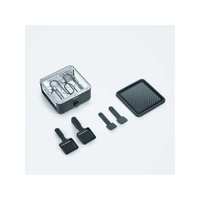 Mini raclette grill para 4 personas - Disfrute de momentos gourmet con facilidad con la SEVERIN RG 2360, una mini raclette grill ideal para hogares pequeños - Compacta y fácil de guardar, cabe en todas las cocinas y ofrece una superficie de cocción de 24 x 24 cm, perfecta para asar carne, pescado o verduras - Su placa de cerámica antiadherente garantiza una cocción saludable, sin añadir grasa, para una cocina ligera y sabrosa - El nivel de almacenamiento incluido es perfecto para colocar sartenes calientes o sin usar - Entregado con 4 cacerolas y espátulas con revestimiento antiadherente, para un uso sin problemas y un almacenamiento optimizado gracias al sistema de clip - La regulación de la temperatura con iluminación LED permite controlar la cocción a la perfección - Un dispositivo versátil y práctico para unas veladas de raclette exitosas.