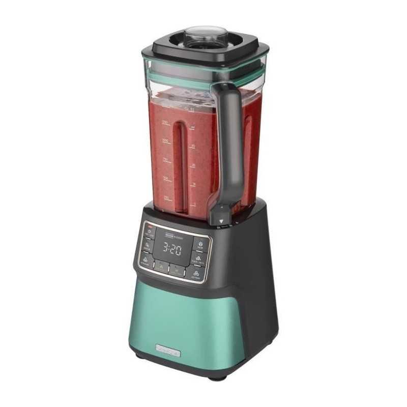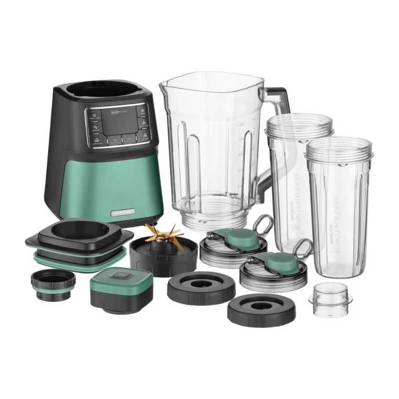 The SENCOR SBU 7871GR vacuum blender offers a power of 1500 W and 28,000 rpm. With 7 programs, it effectively mixes fruits, vegetables and nuts while preserving nutrients. Its vacuum blending technology prevents oxidation, ensuring fresh and nutritious drinks. Easy to clean, it is dishwasher safe and durable thanks to its Tritan material.