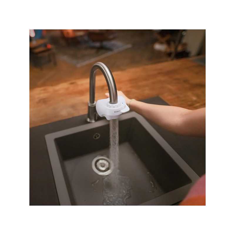 Le systeme de filtration sur robinet ON TAP V offre une solution pratique pour obtenir de l'eau propre directement de votre robinet de cuisine. Il est facile a installer, dispose d'un indicateur de changement de filtre, et offre trois modes d'utilisation. Avec une capacité de 600 litres par filtre ( environ 4 mois) et cinq adaptateurs inclus, il permet d'éviter jusqu'a 1200 bouteilles en plastique par an. Ce systeme utilise un processus en 4 étapes pour purifier l'eau du robinet tout en préservant les minéraux essentiels comme le calcium et le magnésium pour un goût optimal.